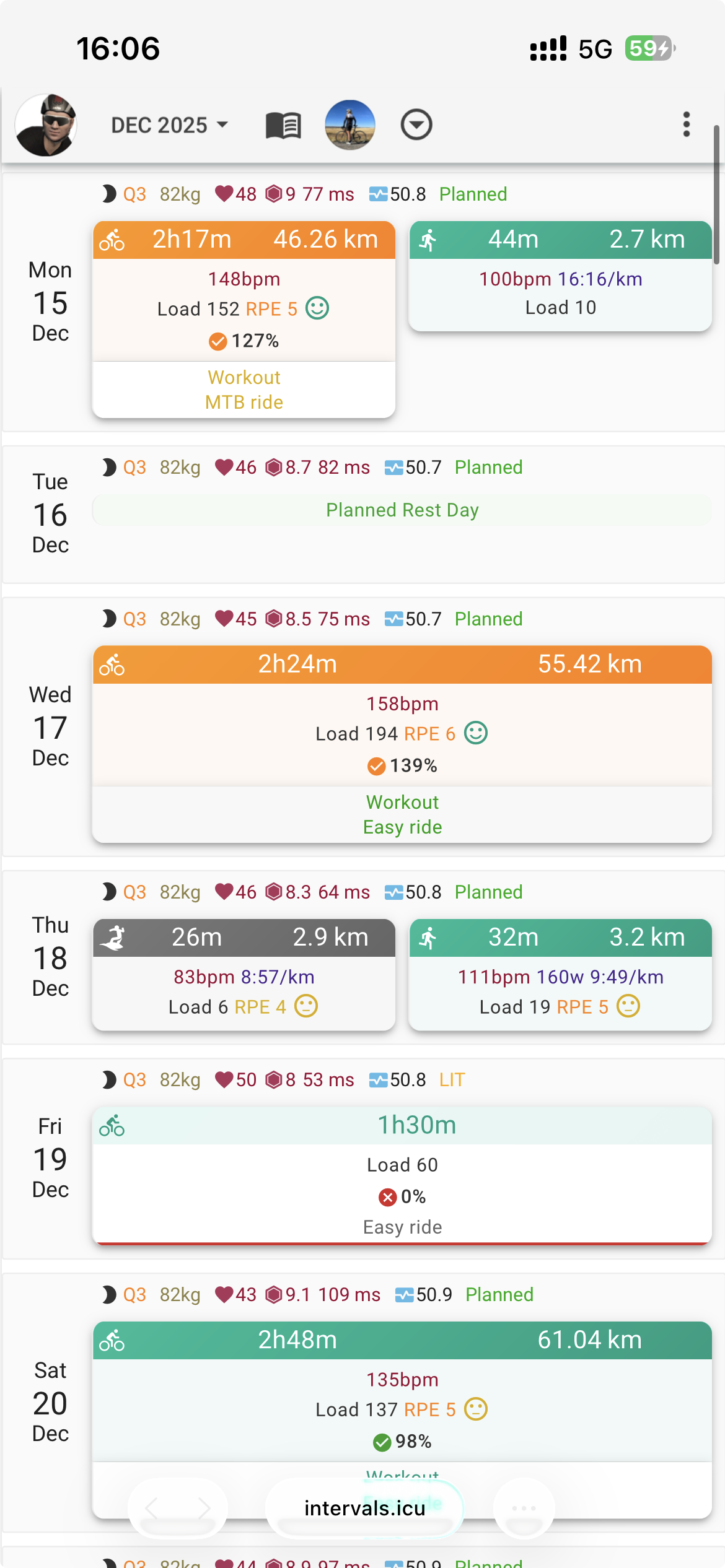 My last few runs (December) don’t have a planned workout associated with the workout, and there are no intervals listed.