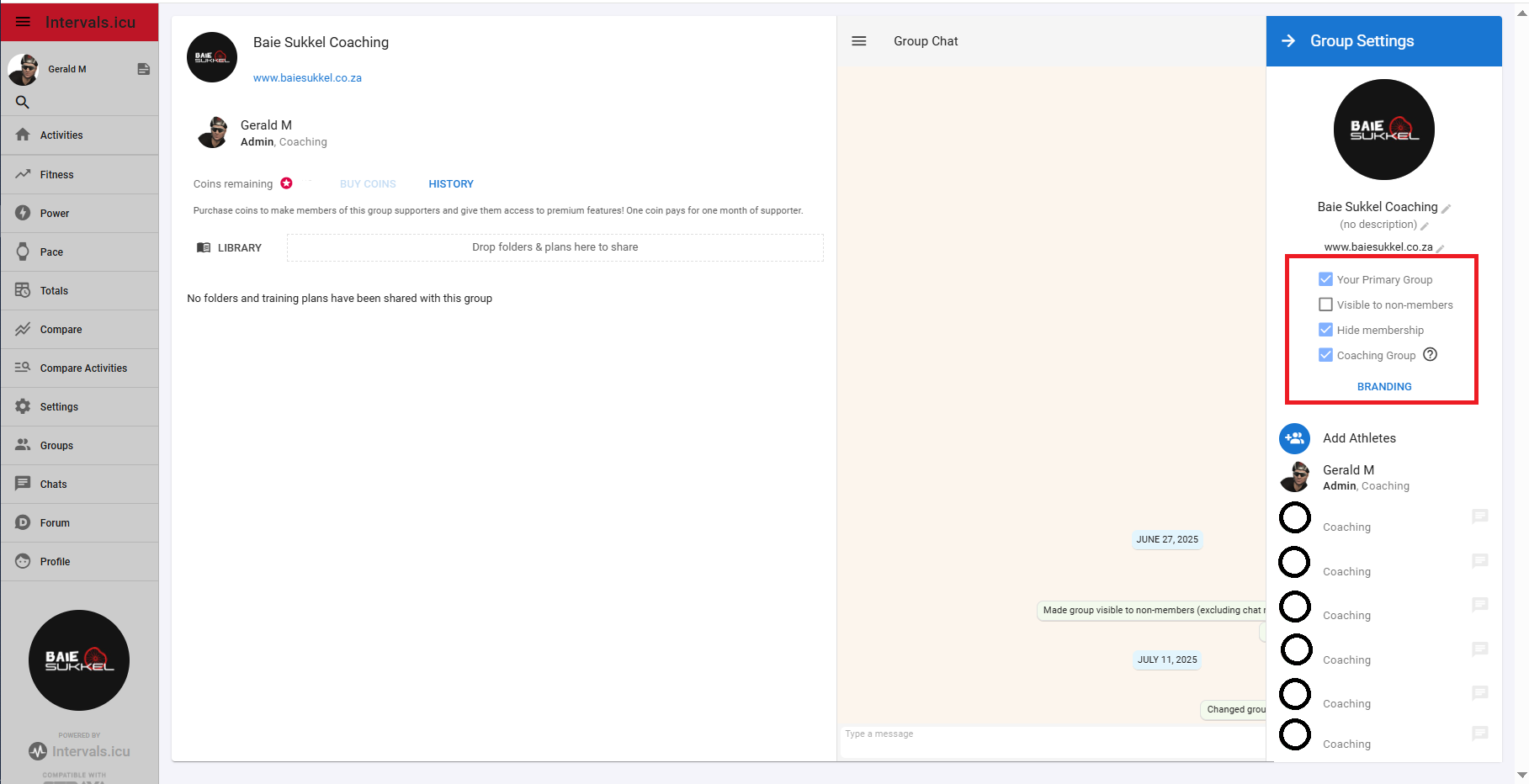 Groups can have branding which is applied to Intervals.icu for group members: