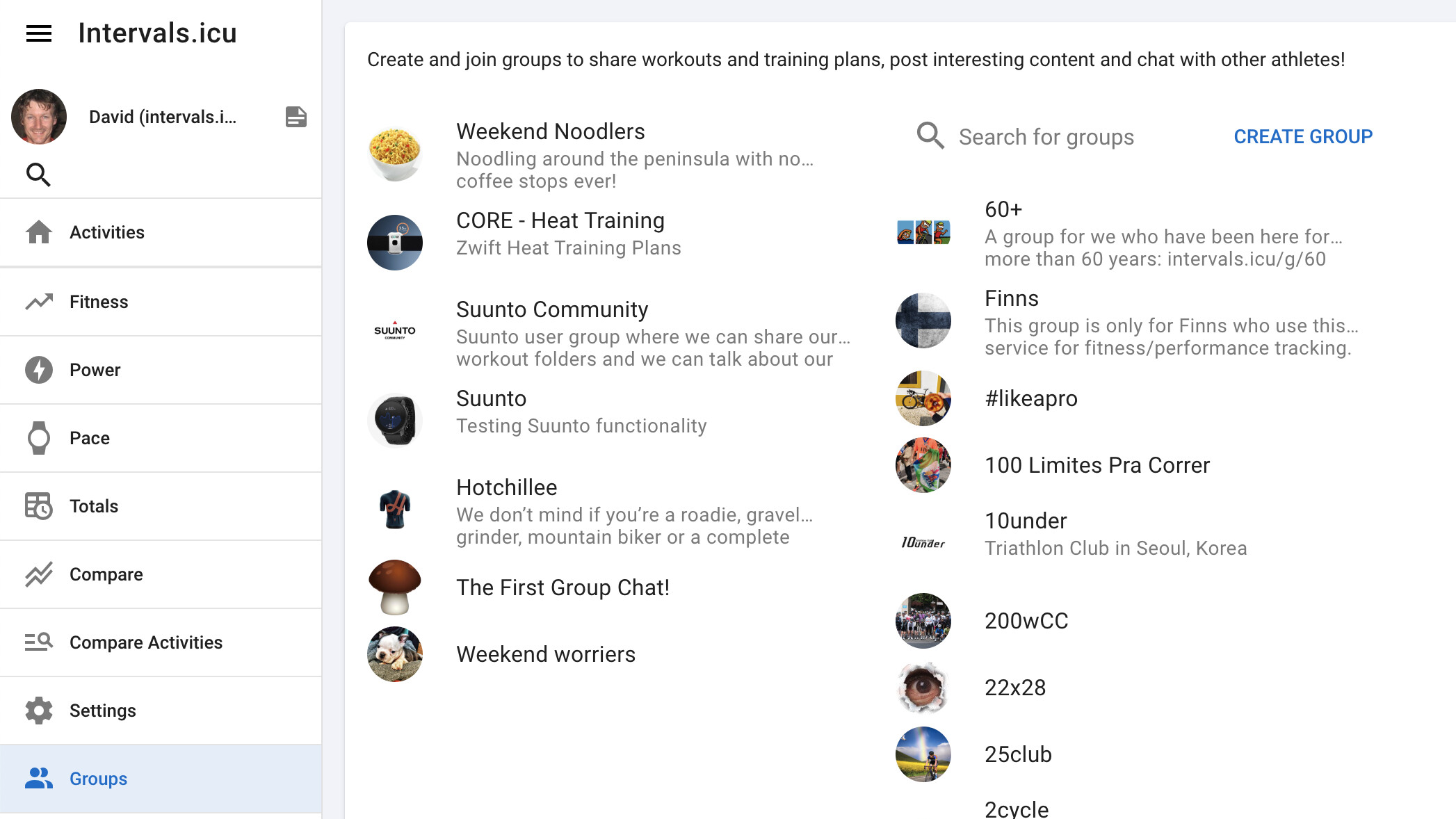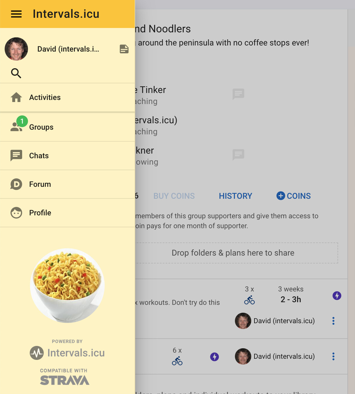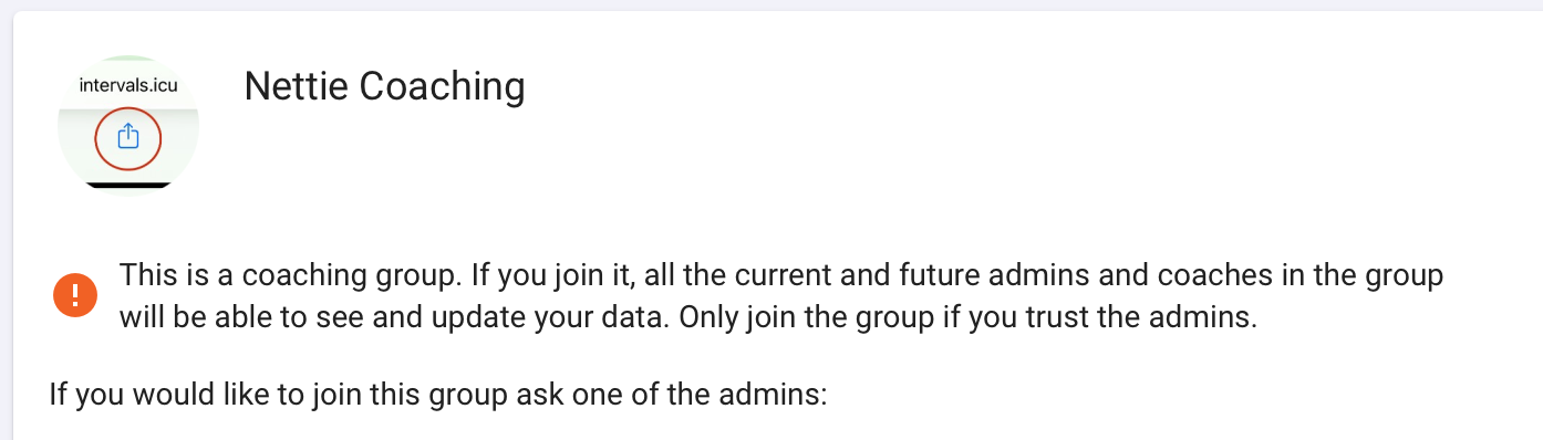 - Ask athletes to register on Intervals.icu and send them links to the groups (e.g. https://intervals.icu/g/weekend-noodlers) you want them to join. They just have to click one of the admins and ask to join
