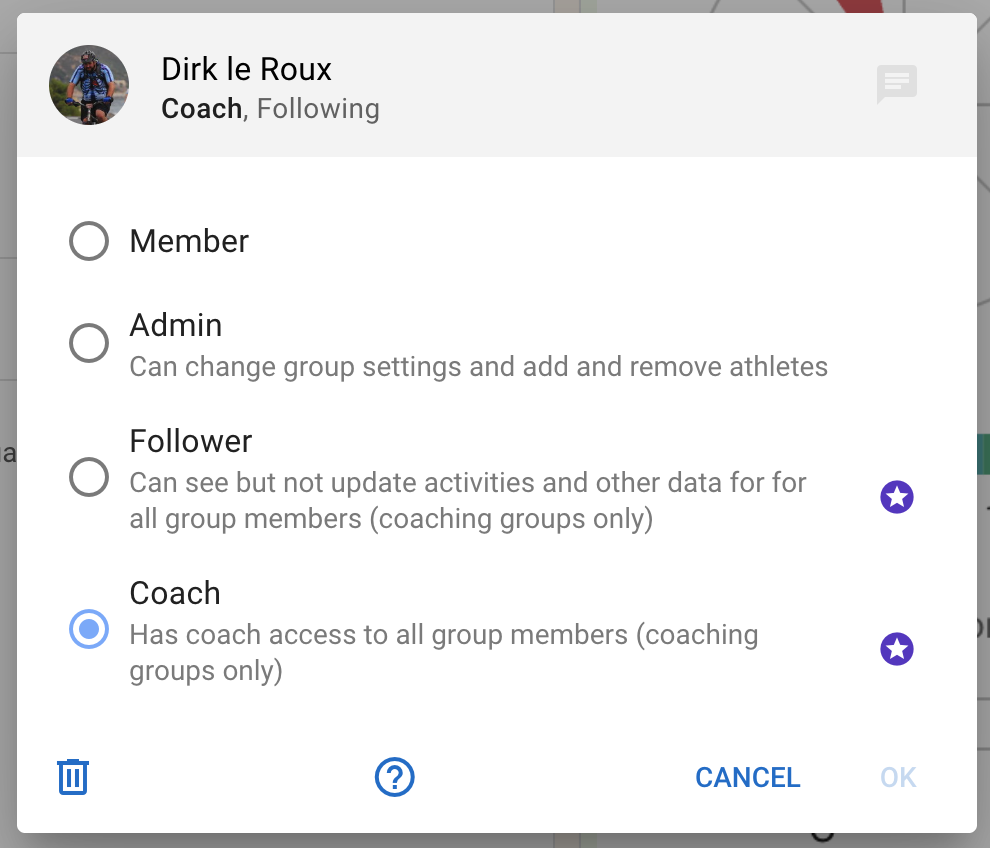 - Add coaches to groups and set their role to “Coach” (they must be supporters)