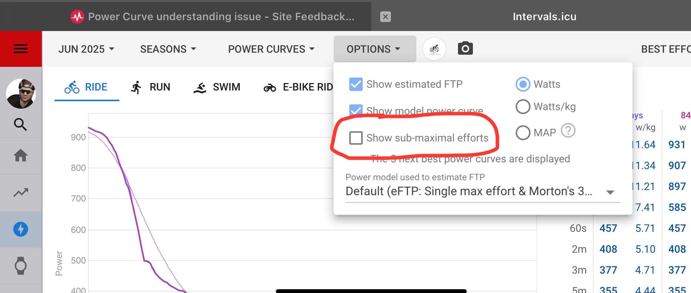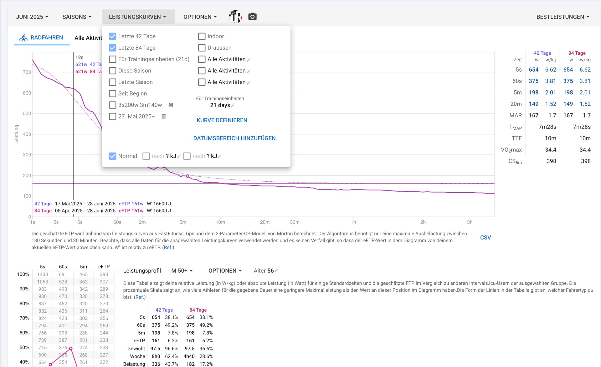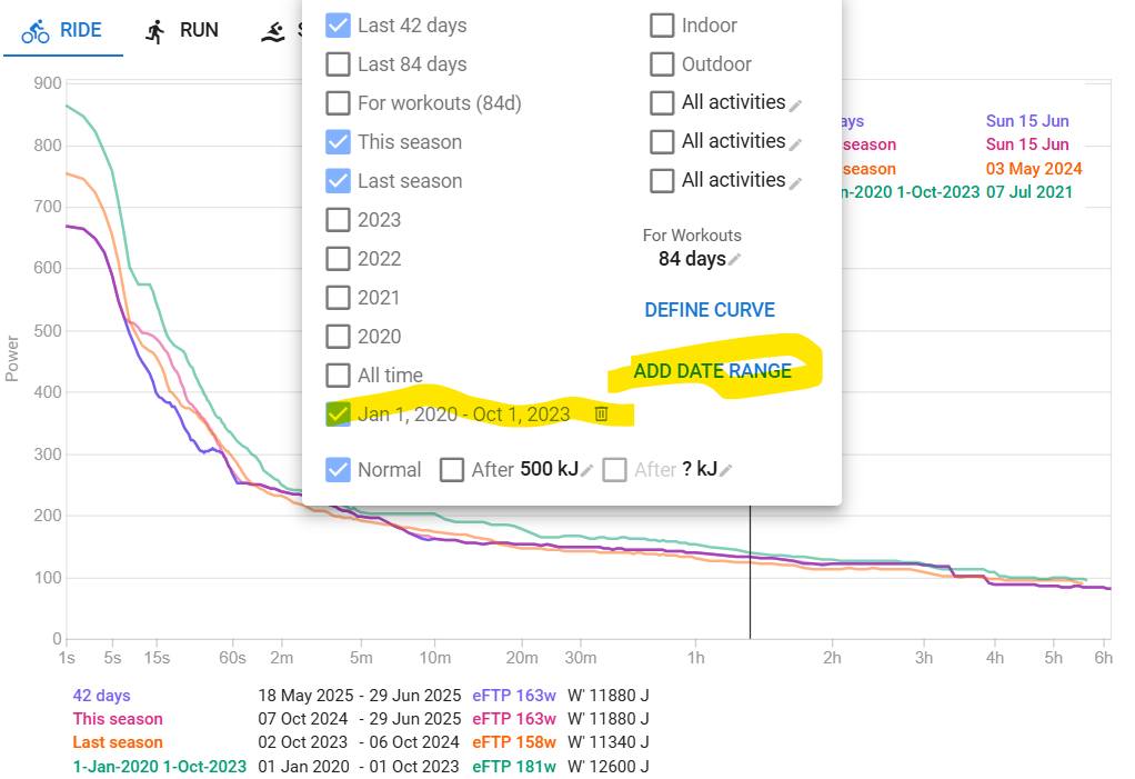 My thinking is that when I select multiple display options in the Power Curve Menu - e.g last 42 days and last 84 days - that I would get not only one, but two curves and value sets displayed.