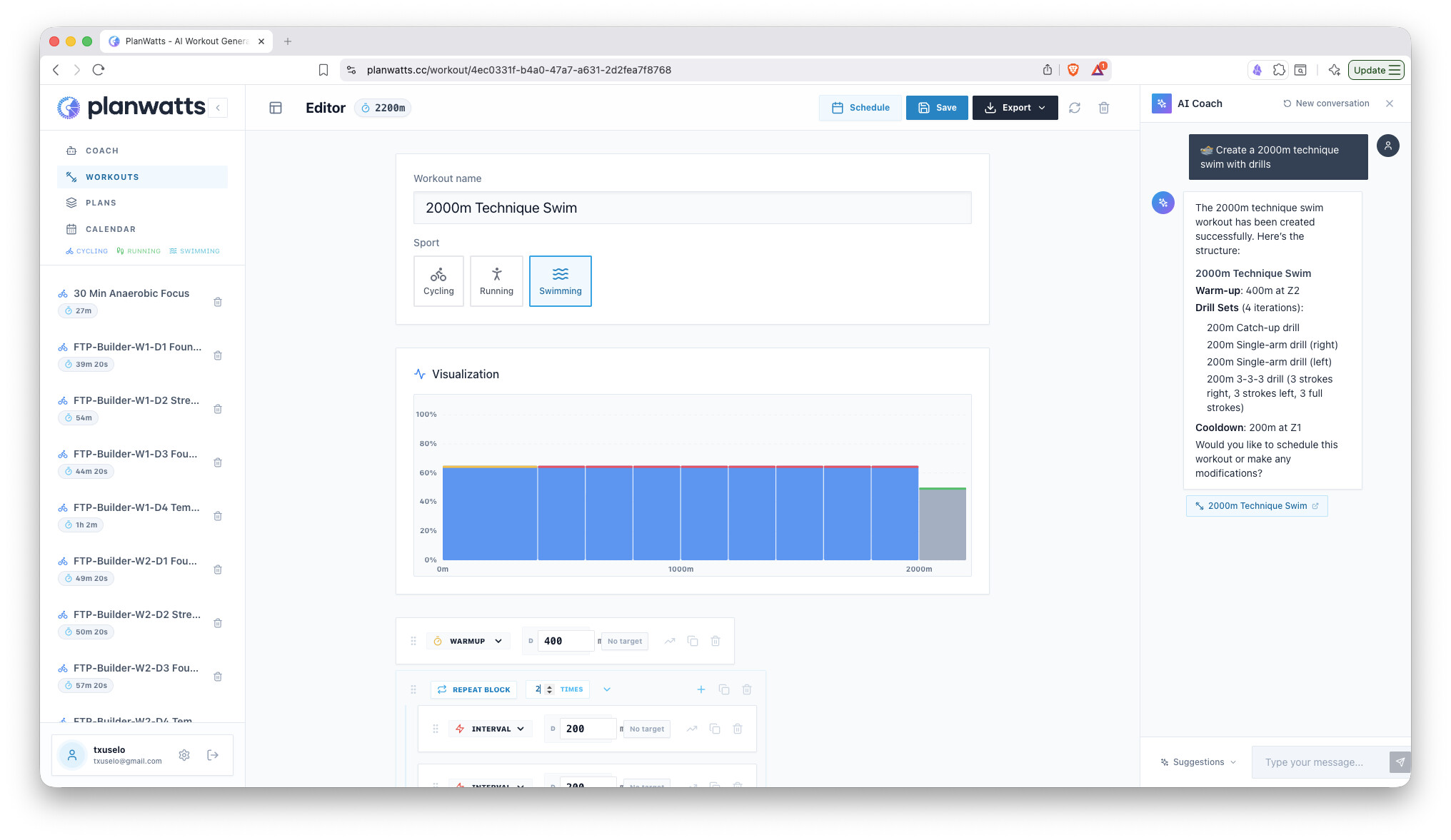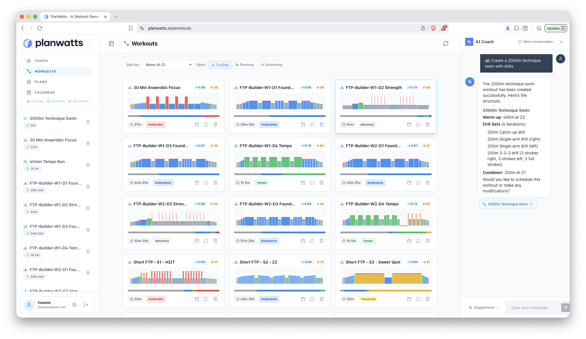 PlanWatts now supports running and swimming alongside cycling. The AI Coach has been completely rewritten to be smarter and more reliable, and the entire UI adapts to your sport.