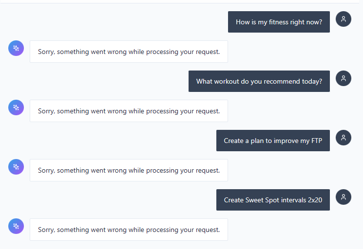 AI Coach tweaks - The AI prompt has been refined. It should be better at creating structured workouts from your descriptions, especially for repeat blocks (those were causing some sync issues with Intervals that are now fixed).