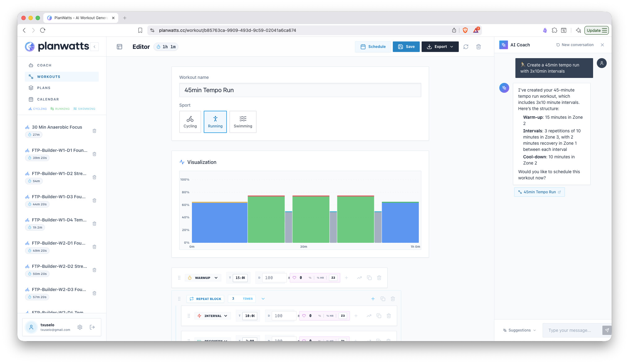 The Garmin builder is… well, we know how it is. And while other builders are great, I wanted something that felt more like having a conversation with a coach than filling out a spreadsheet.