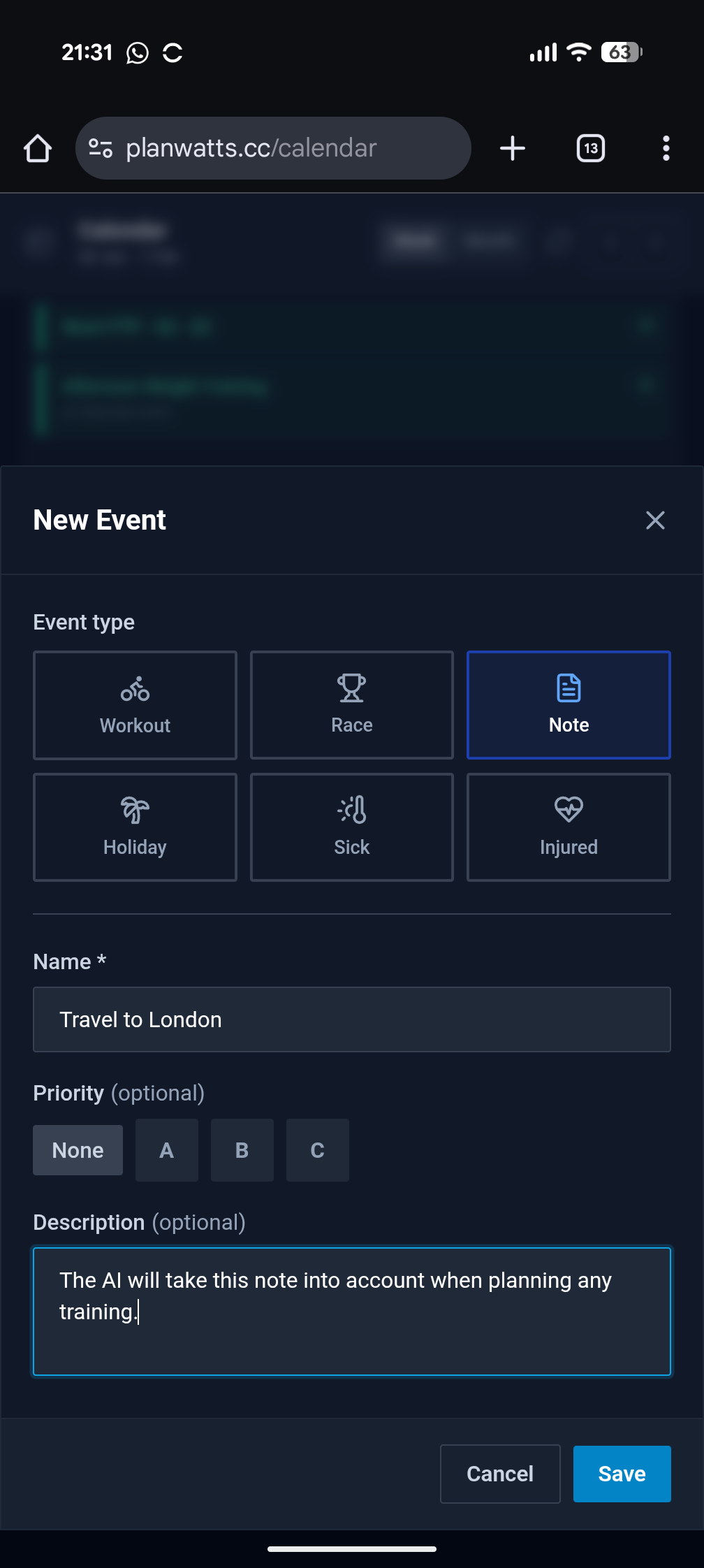 This release introduces Extended Calendar Events - now you can track races, notes, holidays, and more directly in your calendar. Plus, the AI Coach can now manage your calendar events and provide better recommendations based on your upcoming schedule.