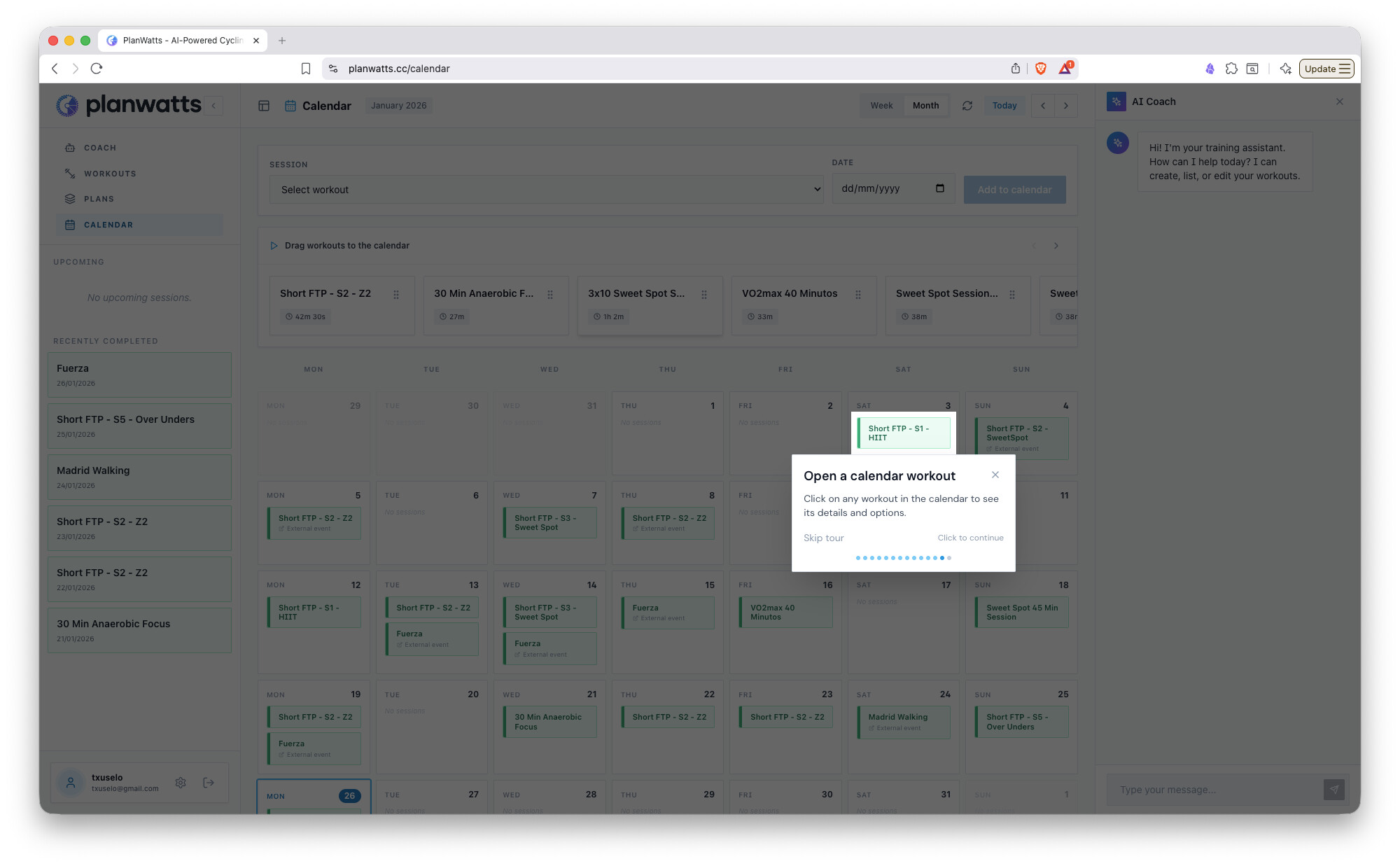 Smarter AI Coach - Completely rewritten AI engine that remembers your past conversations, can search through training science articles to back up its recommendations, and creates workouts for any sport via natural language
