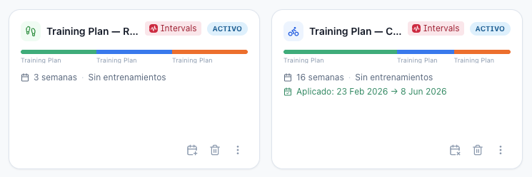 Plan dates shifted one day — In UTC+ timezones (like Spain), selecting Monday as start date would register as Sunday. This was causing plans to sync to the wrong week in Intervals. Fixed
