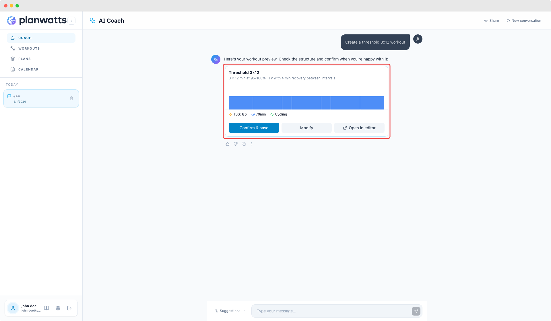 Full walkthrough in the docs: PlanWatts Docs | Training Plans