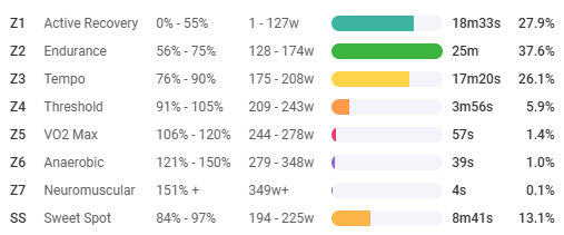 Also re: @WindWarrior I could switch to a 6-zone model like yours to maybe help. The HR percentages in your model seem pretty low - the upper range of endurance is on the lower side of my current Z2. However, it does match up my avg power to HR a bit better on many rides (norm. power is of course way different, as is time in zone). I have some exceptions (4h50m with an average of 151bpm, 4h38m at 165bpm average ) but those were rather intense rides and probably not “healthy” . I do think however that if I used those zones I’d have even rides classified as tempo for power and recovery/endurance for HR (based on zones rather than average).