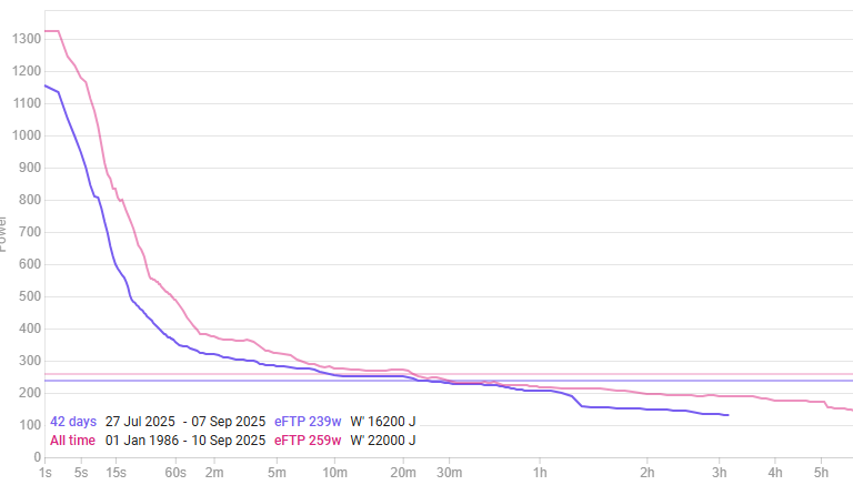How many hours per week do you ride and how does your full power curve look like? There’s a big gap between 5 min and 60min in the one you posted.