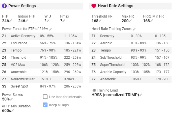 Interesting, I guess I didn’t look close enough at intervals.icu. My HR settings only have 5 zones, because HR isn’t all that valuable for zones 6 and 7.