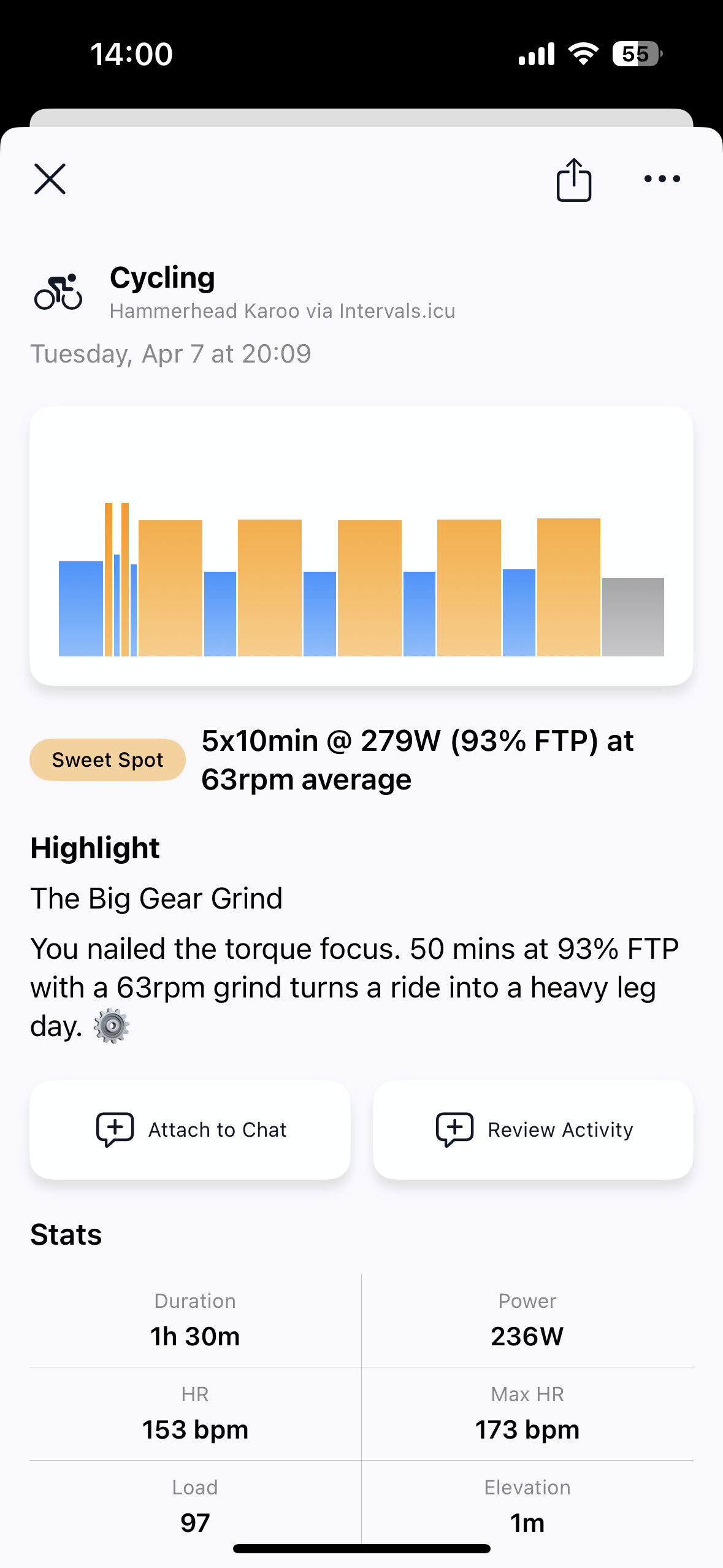 - Ask anything about your activities, like “Review this ride”, “Would you adjust power targets next time I do this session?”, or “What training led to my all-time power PBs? Any patterns?”