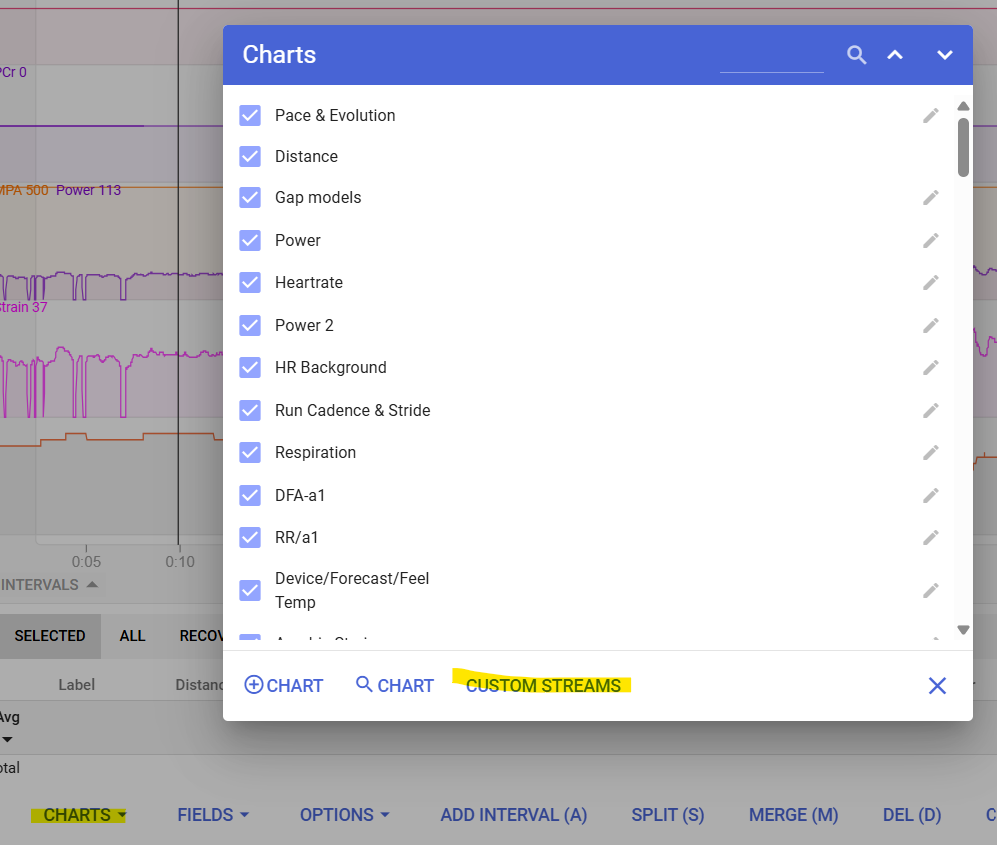 Is there a way to add this to the charts too? I found the custom field but that only shows one number for an entire workout.