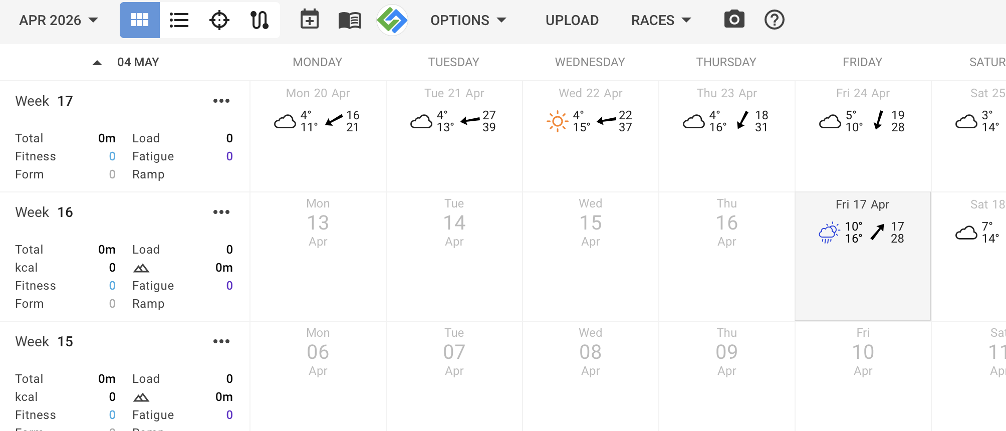 fitness page shows : No activities found