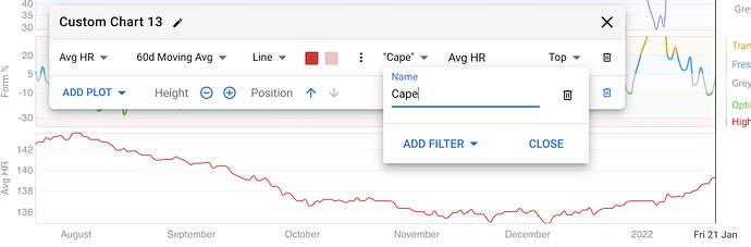 Close. You can plot a 60d moving avg of HR on the /fitness page and filter for just some activities: