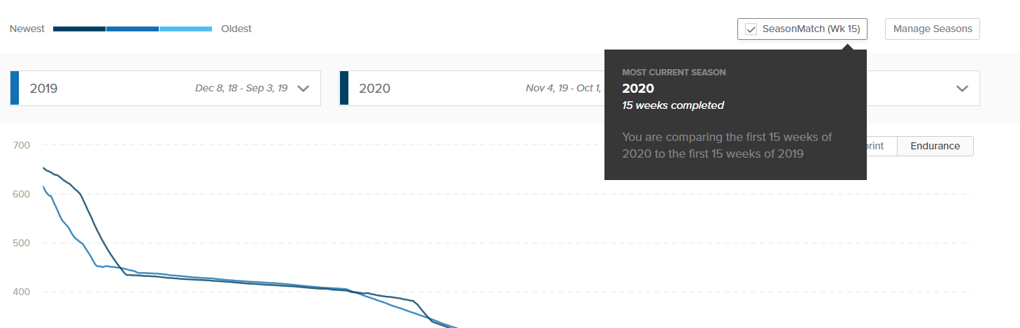 I too am very interested in being able to compare my current season’s power curve with last season power curve over the same weeks. Comparison against last year’s entire season is less useful for evaluating my training because it is a comparison against my entire last season where i"m inevitably fitter later in that season. So apples to oranges.