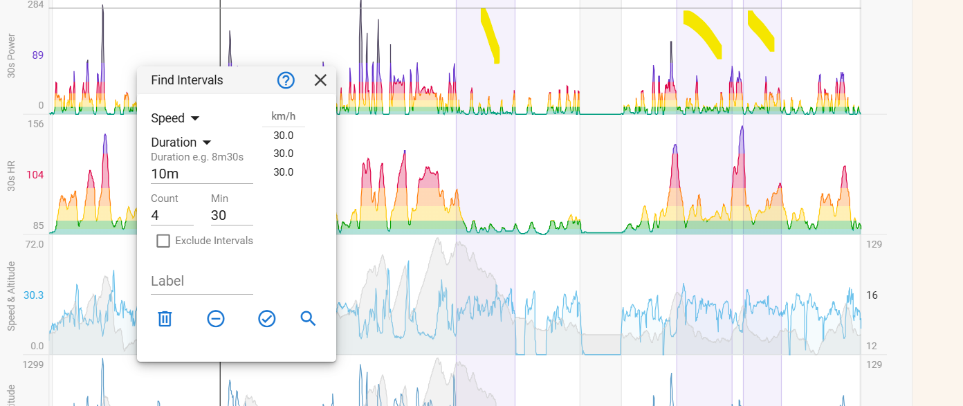 For example, if someone wanted to focus on all portions of a ride where speed > 40km/hr. Would they just create intervals for each such portion (and then reset them/change them later if they wanted to focus on a different criteria).