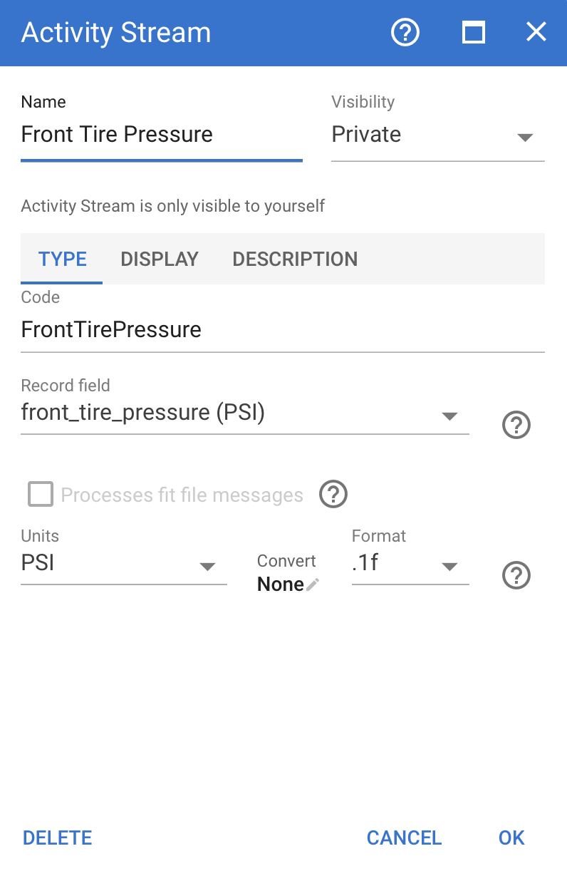 I am using the outrider tire pressure sensors and I am able to display the custom stream.