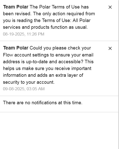 Logged in on a different computer . . . I’m getting the error fetching activities from Polar message but my last two missing activities are now here and when I returned to my other computer it’s good there as well.