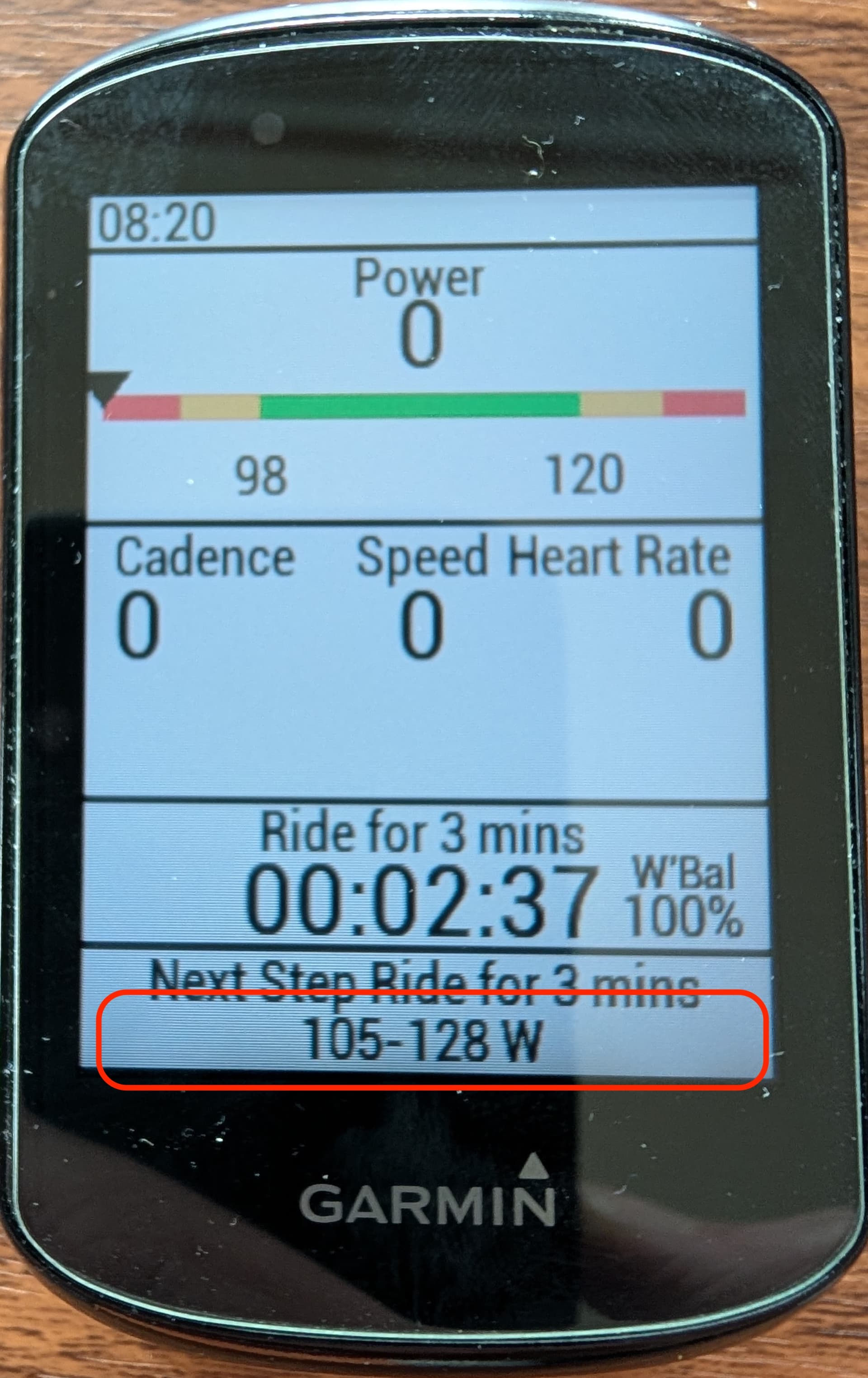 The complete Step Name / Note “Bike Zone3 ~ rpm75” will be displayed on the Edge.