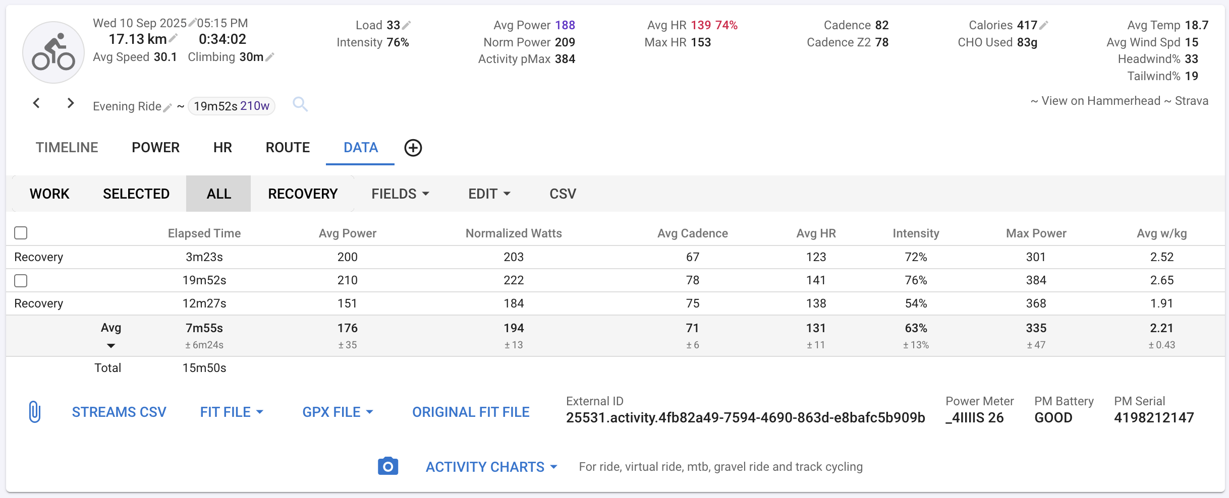 I see Strava in the top right. Iâll look at the next ride, which will be the first after connecting Hammerhead and Intervals.