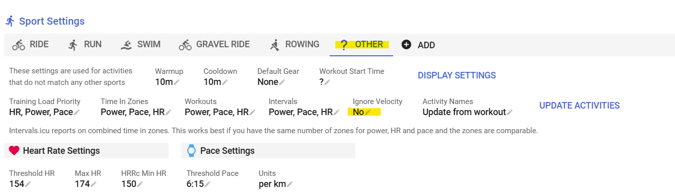 On the Actions menu, select Settings and then check ‘Ignore Velocity data’.