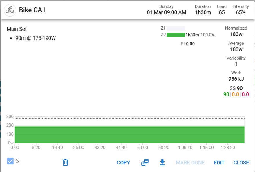 However on Garmin Connect, only the duration of the training, but not the power range is shown. Similarly, when I start the workout on my Tacx trainer, the power isnt set correctly.