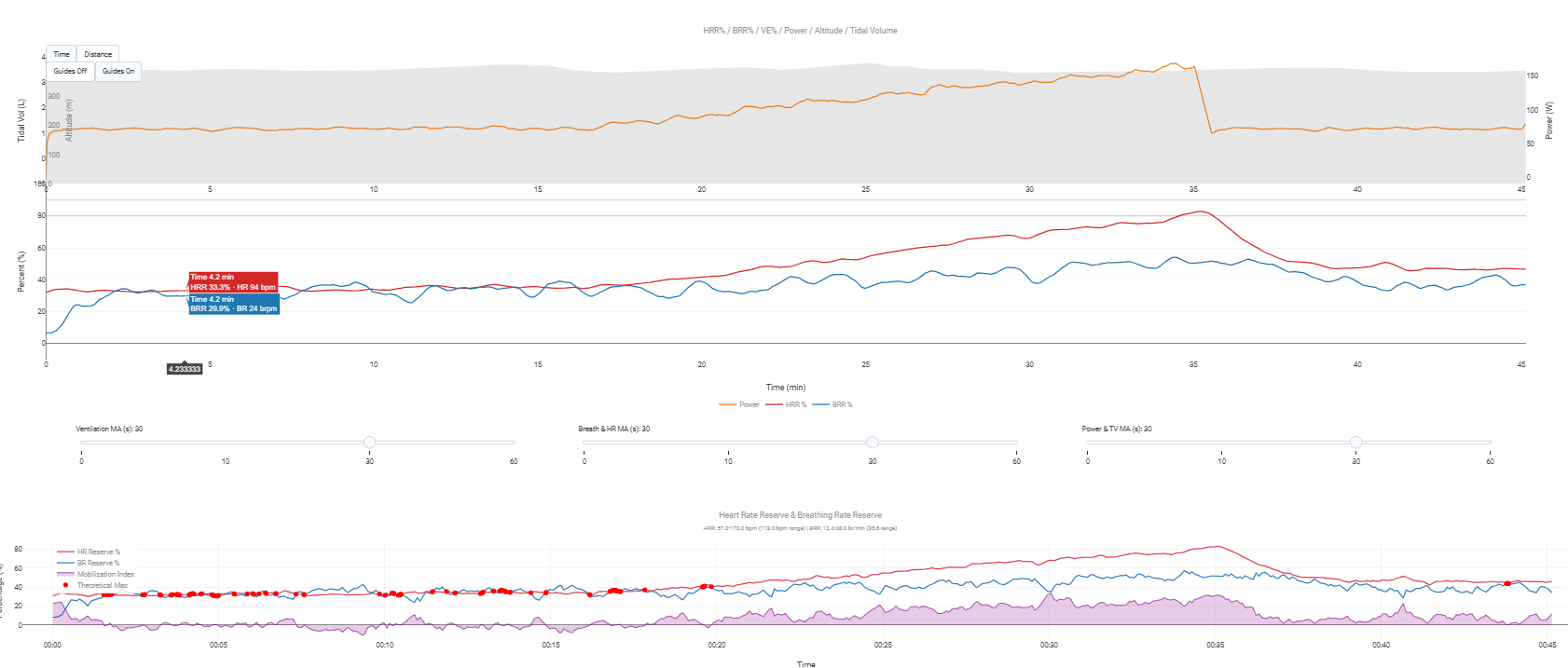 And I like the idea of setting the ‘Guides’ at 80 and 90 %. It does need manual config or modification to get the BRmin/BRmax/HRr/HRmax. I modified with the solution you are using. The configurable smoothing is nice to. Comparison of a submax step-test below.