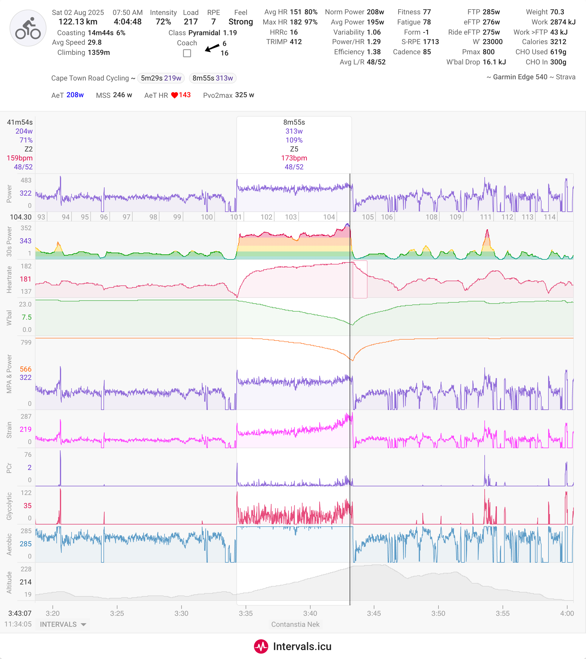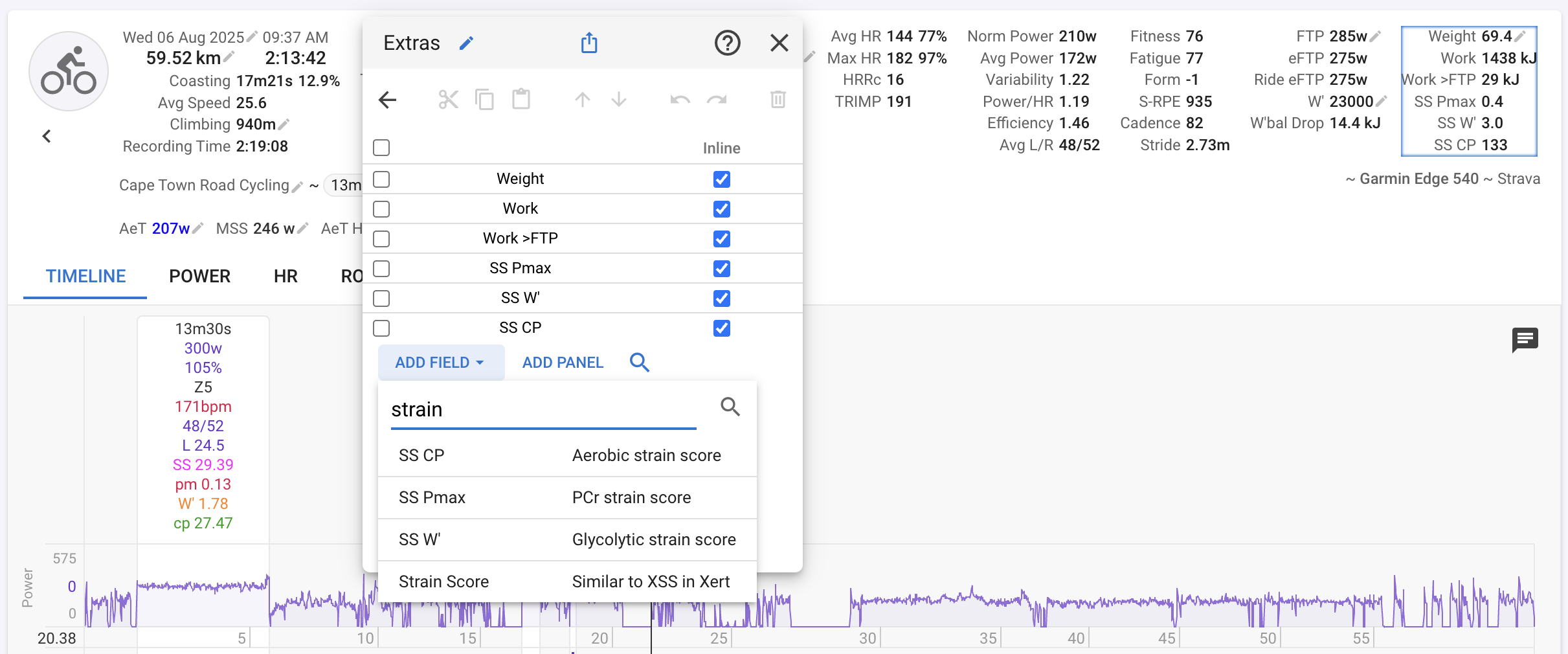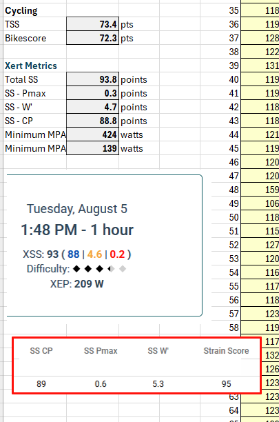 As you can see “Strain Score” (like XSS from Xert) and its 3 components are also available. It seems to generally be quite a bit higher than TSS (“Power Load”). For me this is true even for easy Z2 cruise rides. Not sure if I have something wrong or that is just how it is. Would be better to more closely match TSS especially for multi-sport people. This is only for cycling.