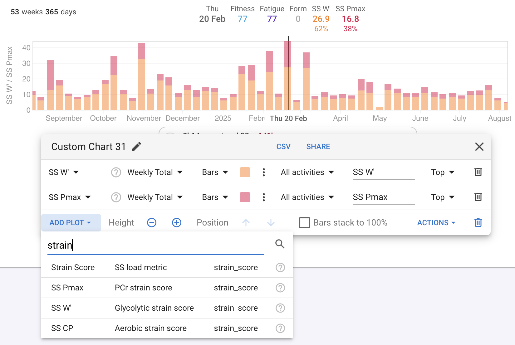 @david Can we plot this Strain Scores, CP, W’, etc… in Fitness tab?
