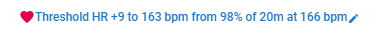 There is a new achievement for when Intervals.icu thinks your threshold heart rate has gone up. You can click it to change your threshold HR (and other HR zones) for future activities. In this case I am not changing anything … I lost my only bottle in the first few minutes and got a bit thirsty!