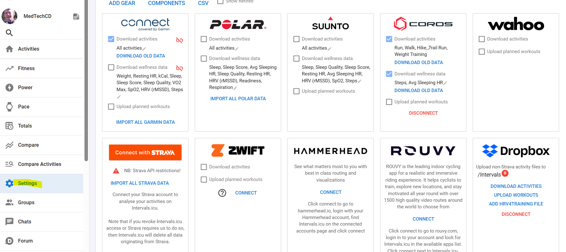 Only use Strava if you have no other possibility. Strava limits the use of data downloaded from them. You can find all connections on the Settings page.