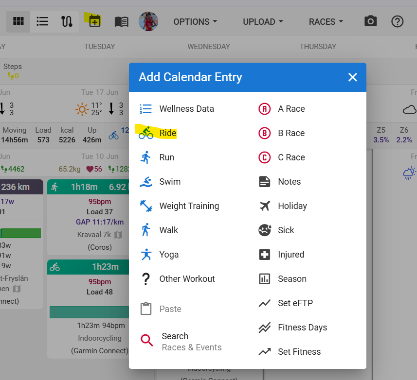 Thank you. I want to add previously done workouts. I used Tp2intervals to copy workouts from TP, but the ride data wasn’t copied. When I upload the FIT file, it replaced the workout data from TP (example: Hard 1m 105-110%) with a doc file.