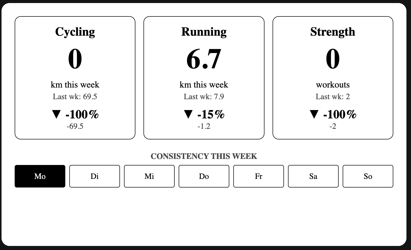 The only challenge is to get the data in there. I’m using the webhook feature because TRML introduced a limit to not overwhelm their servers, so I had to optimize it. So basically what I’m sending as webhook is an array of arrays: for every day I send the fitness and the fatique. For example this is the payload: