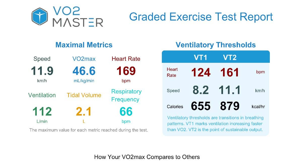 • Estimated VO2: 44.4 ml/kg