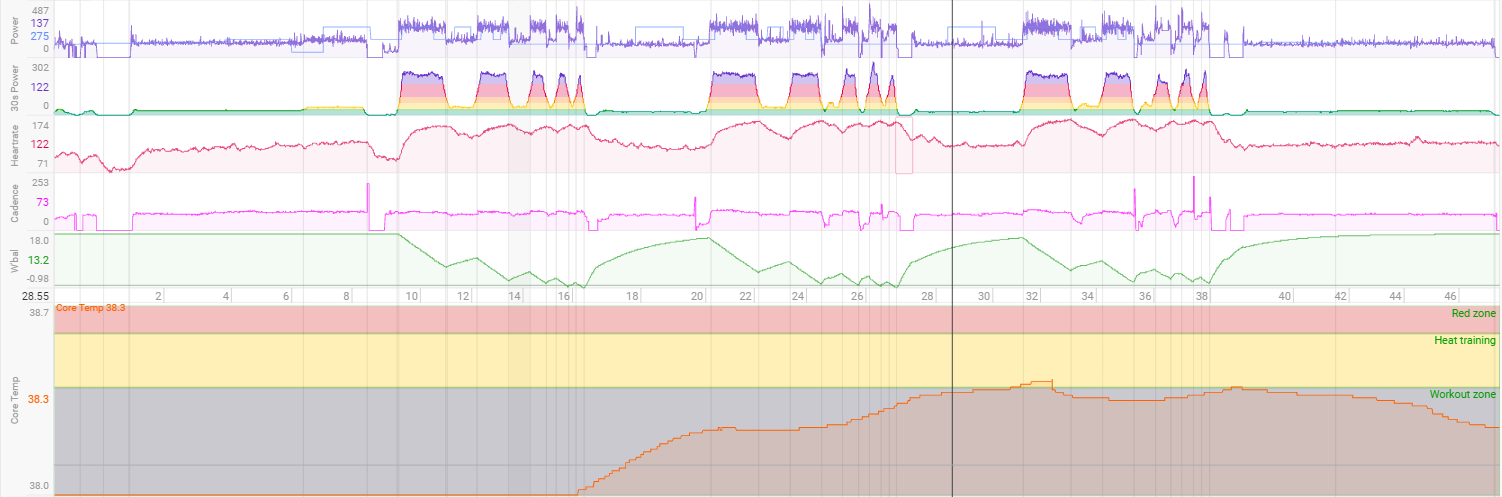 For reference: my 30/15 workouts showed much lower lactate, while heart rate was around sweet spot (lower end of Zone 4).