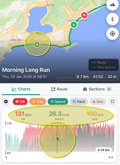 These holidays, I got itchy feet and developed a “geo-first” app for intervals.icu, with a strong focus on maps, GNSS traces and route matching. I noticed a lack of visual insight into activities on mobile, despite the huge amount of incredible data and insights David has already developed here, and I wanted to get my hands dirty with app development to fill the gap.
