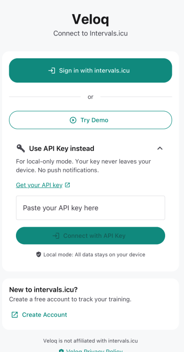Importantly to note… None of your data is ever sent anywhere; the only service it contacts outside of intervals.icu is an OAuth proxy to make it easier to login. Otherwise, all route analysis is performed locally on your phone, optimised to run there, but may run slowly on older phones – you can disable this feature if it impacts the usefulness of the app.