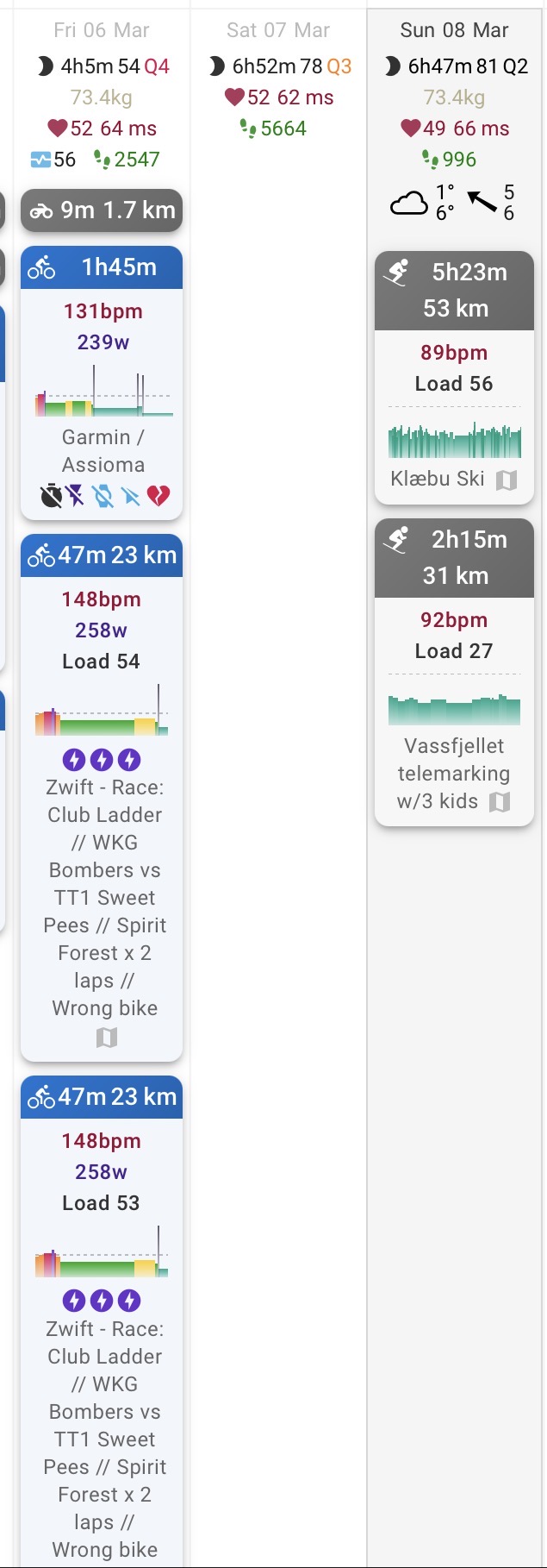 That is just one example, though. Other examples are activities that I have cropped (e.g., because I forgot to stop it before driving home). I crop them in Strava, but in Garmin Connect I haven’t found a way to crop. So to avoid suddenly having 10 km of driving included in the skiing or bike ride, I would keep only the Strava version in intervals.
