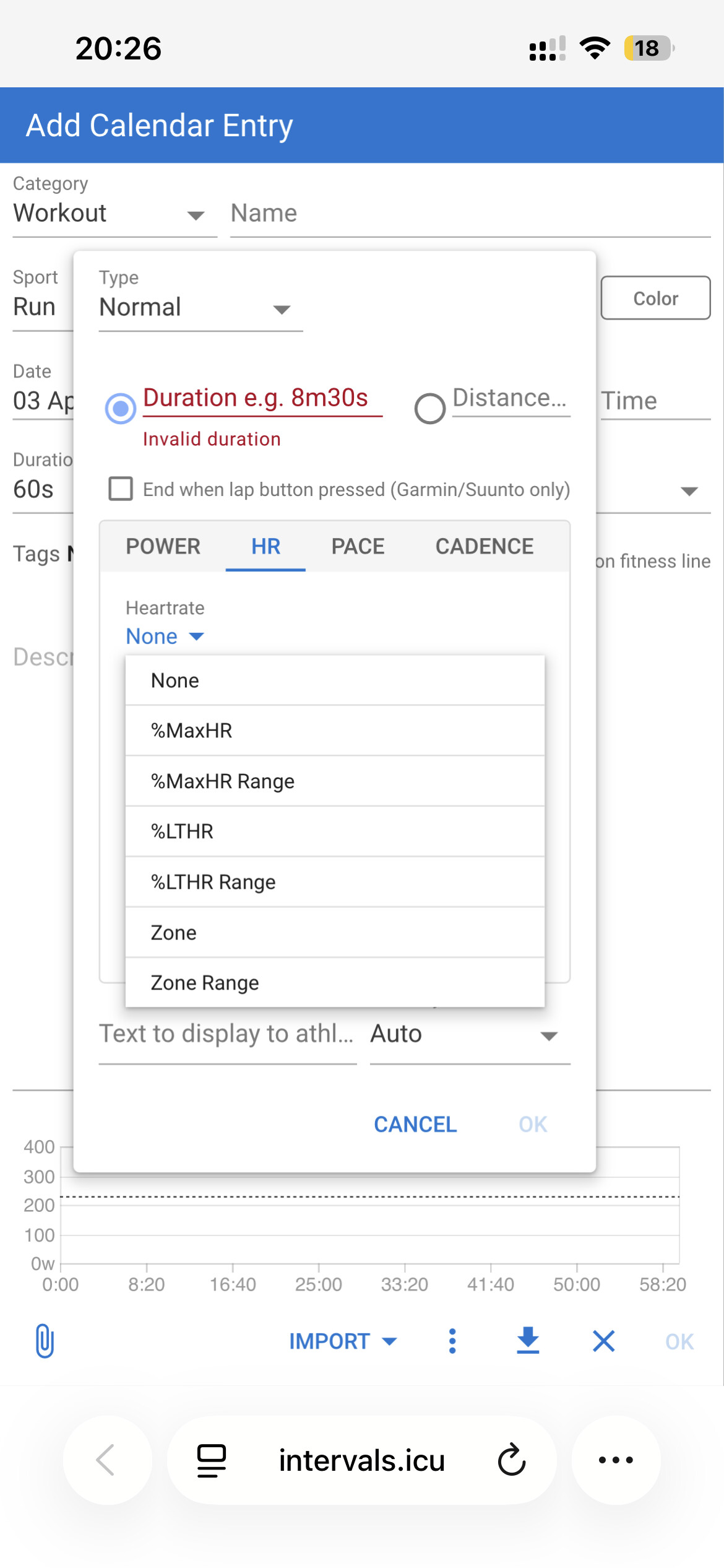 is it normal for the graph to be empty if you make a time-based workout? Or the graph is purely for power?