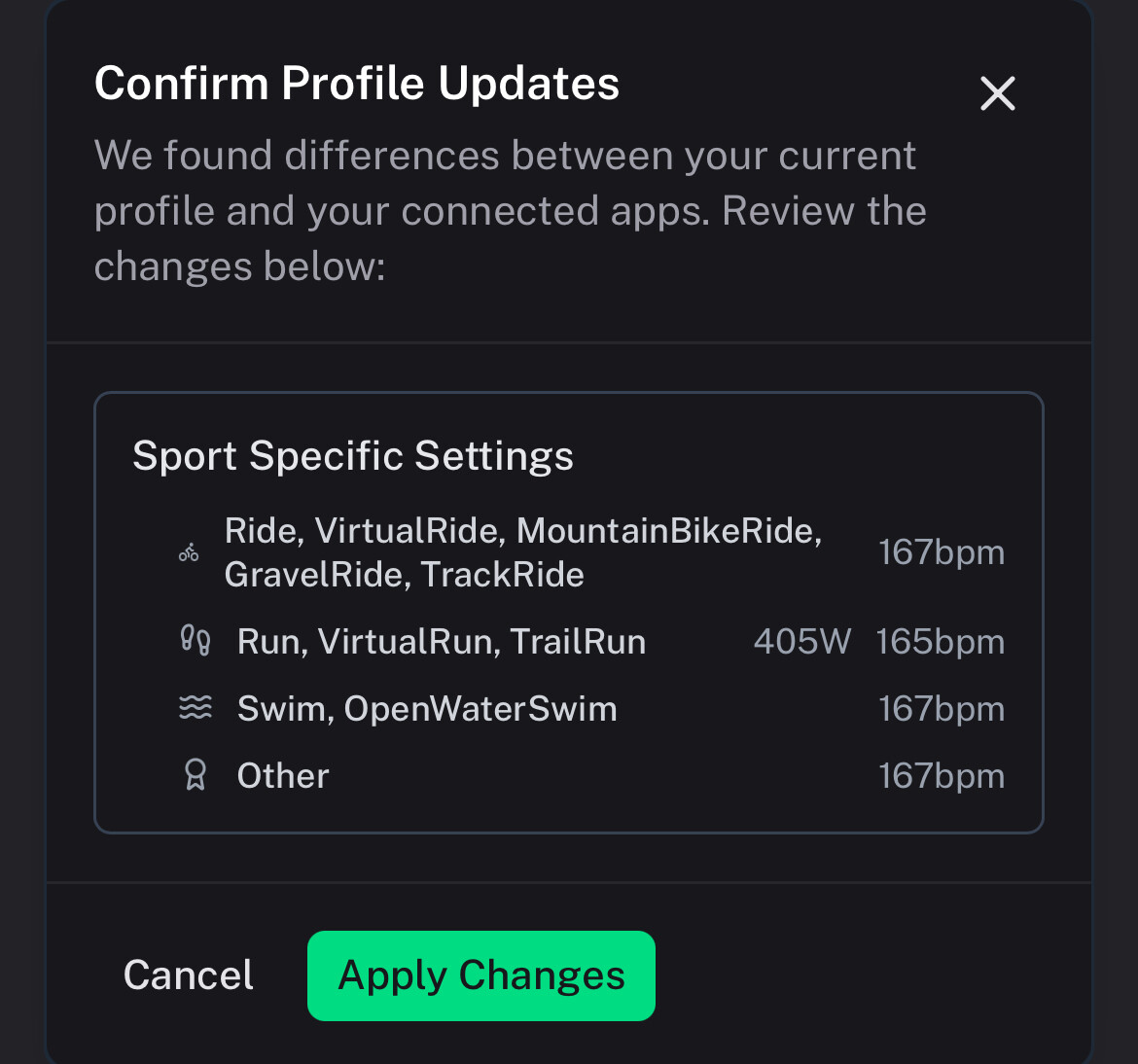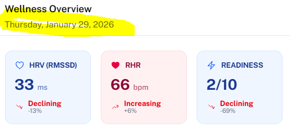 I’m a bit puzzled by the modal issue because I thought I’d tracked down that timezone bug already. Just to make sure I’ve got this right: on the dashboard, you’re seeing the correct wellness info for today (no yellow triangle), but when you actually open the modal, it’s showing data from the previous day?