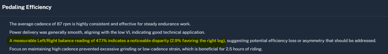 My Garmin (and Intervals) reported a L/R power balance of 53/47 for today’s ride: