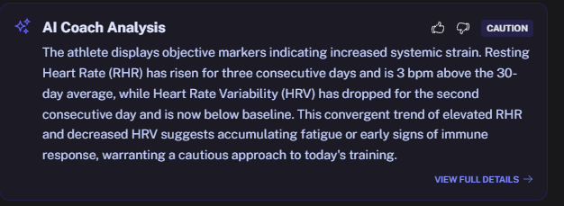 The coach thinks I’m having 3 consecutive days of elevated HR, while there are actually only two; today and yesterday were elevated, Wednesday was still fine.