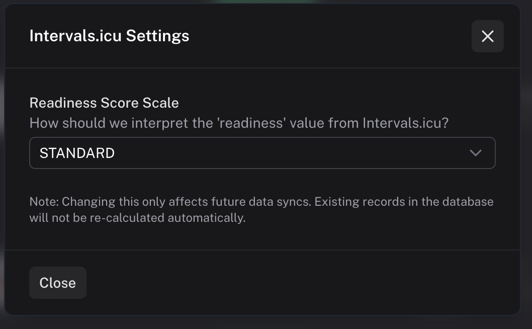 It looks like we can’t determine from the API response how the readiness field is populated on the intervals side. To fix this, I’ve added an option under Settings > Apps so you can manually set the scale. Honestly, I am not sure how Garmin works, but we should check. Here you can find the settings: