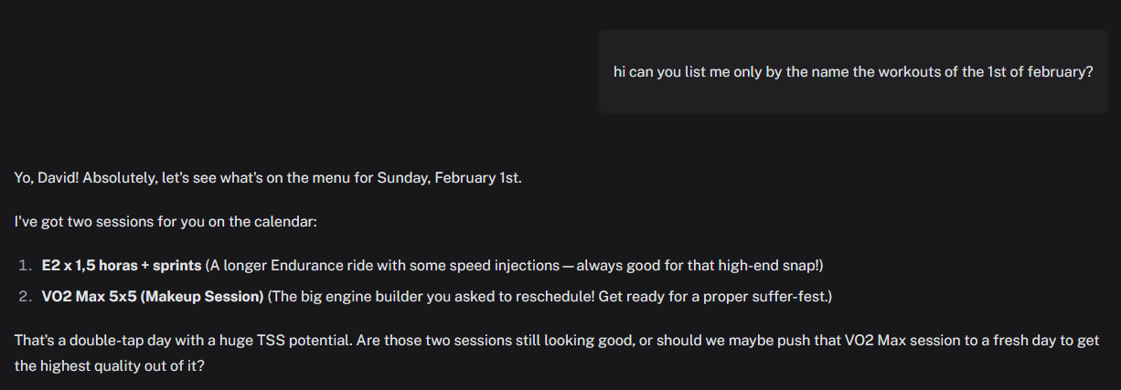 I’ll be spending more time soon on making the training plan feature work better. The way systems like CW create these plans is fundamentally different from how non-LLM systems do it, so I think it’ll take a good bit of trial and error on my part to really get it right. I’ll also add more shortcuts to the UI to be able to report plan generation issues more straight forward.