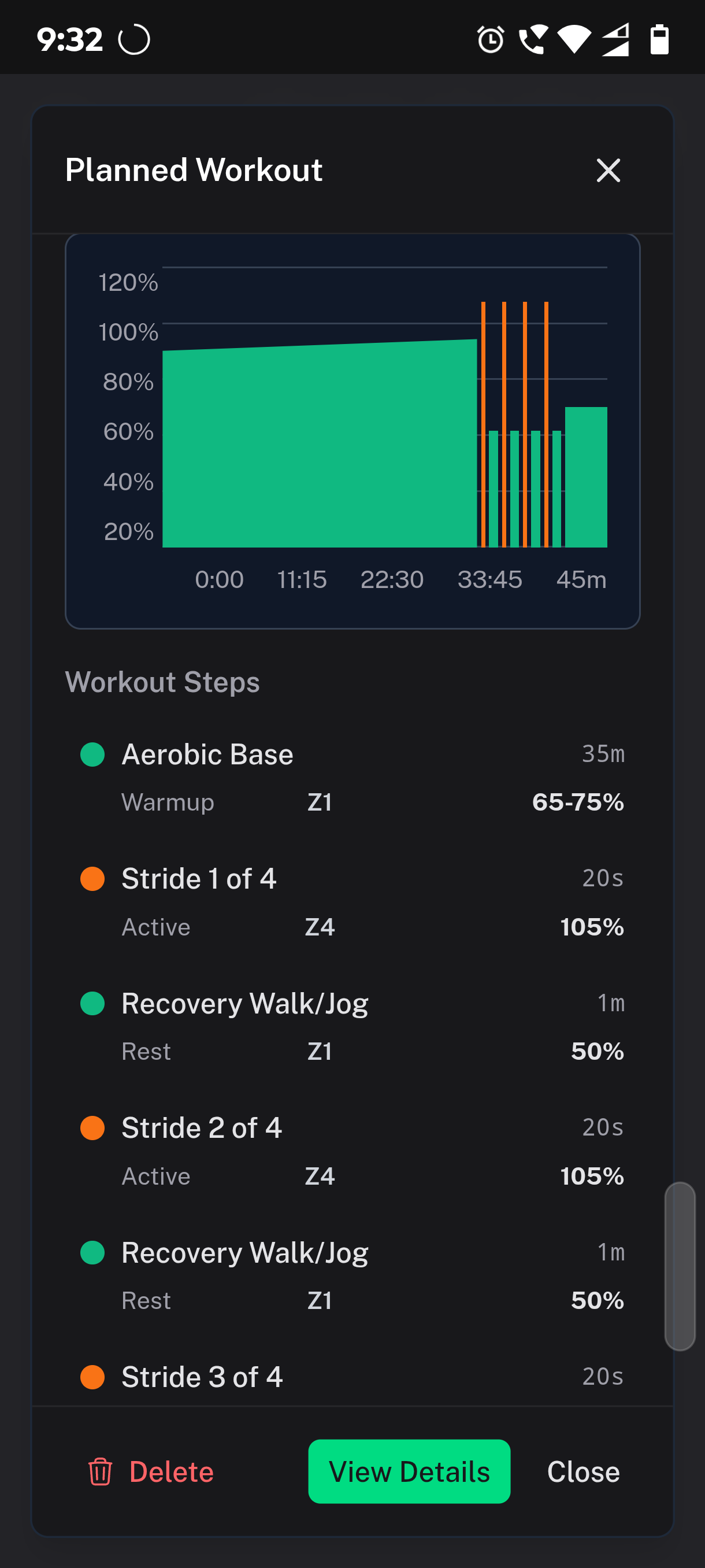 Missed the specific high-power neuro-muscular stimulus from the 4x 20-second strides