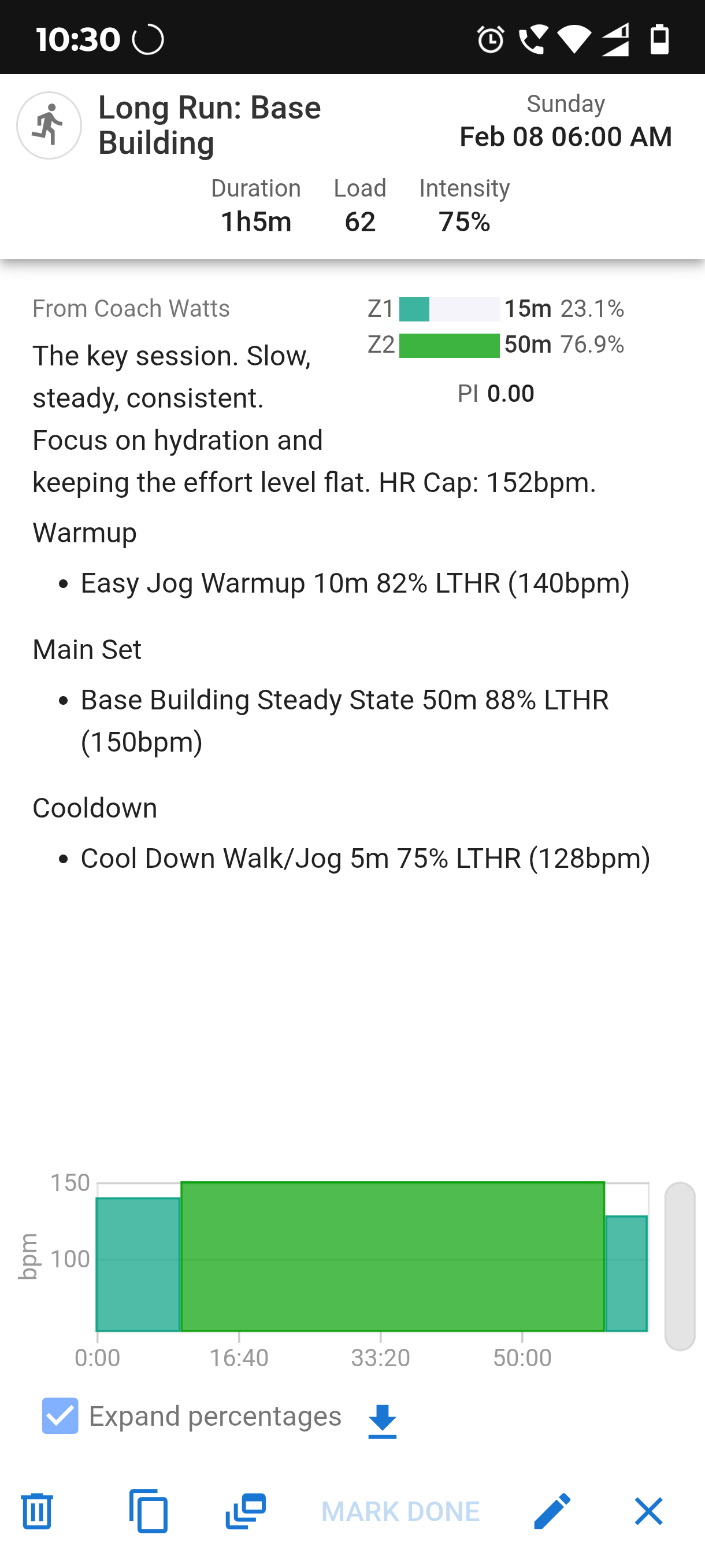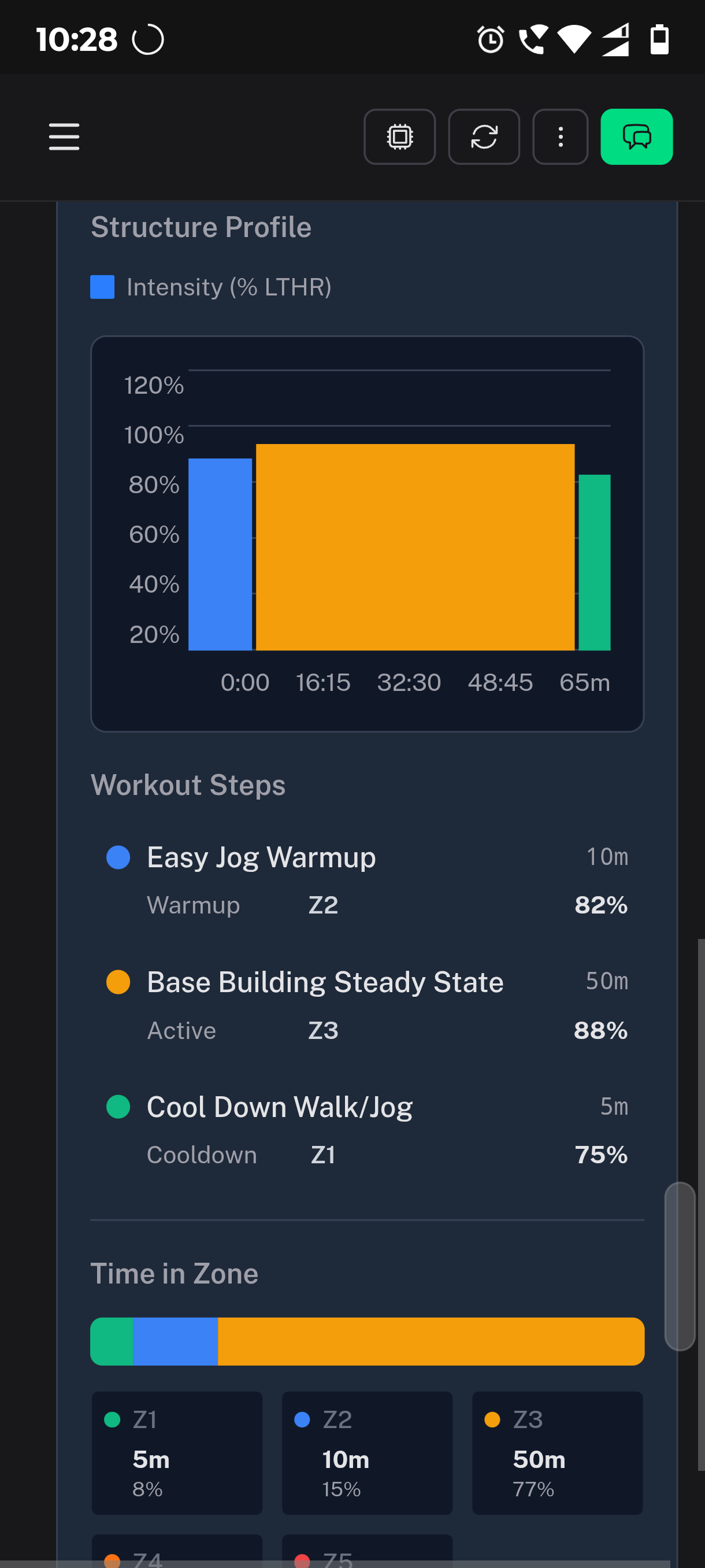 e.g. from the previous screenshot is that 89% of my LTHR is 152 which is the upper limit of.my zone2 but in FTP that % is 280w which is right in the middle of zone3 so the chart and table show zone3 and not zone2