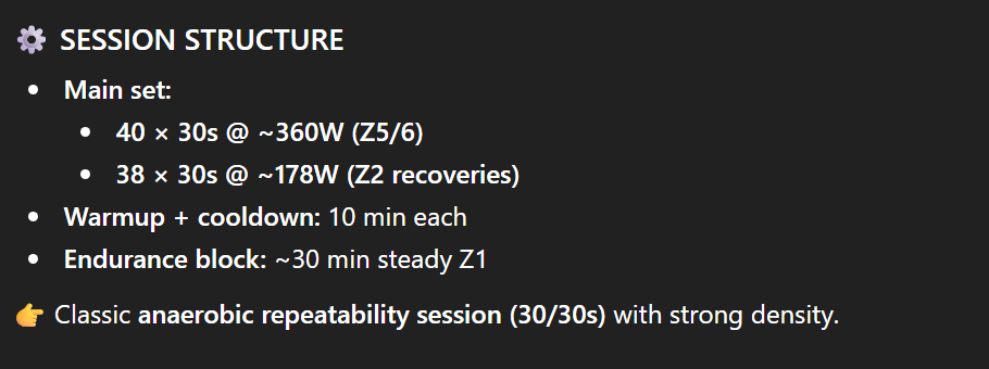 I have now made a further change to getonedayfullactivity tool to reduce the overhead when a large number for intervals was present in a single activity, and the size returned to ChatGPT would exceed its limits, whilst this is an unusual case, the new changes also mean a faster response and faster render times. There should be no loss of function in an activity analysis. All intervals are preserved and it still supports multi-sport and those with CORE heat sensors.