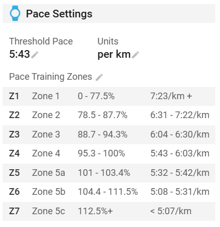 - My threshold pace is set to 5:43/km but your model returns Threshold Pace (stored): 2.915452 min/km → 2:54.9 per km
