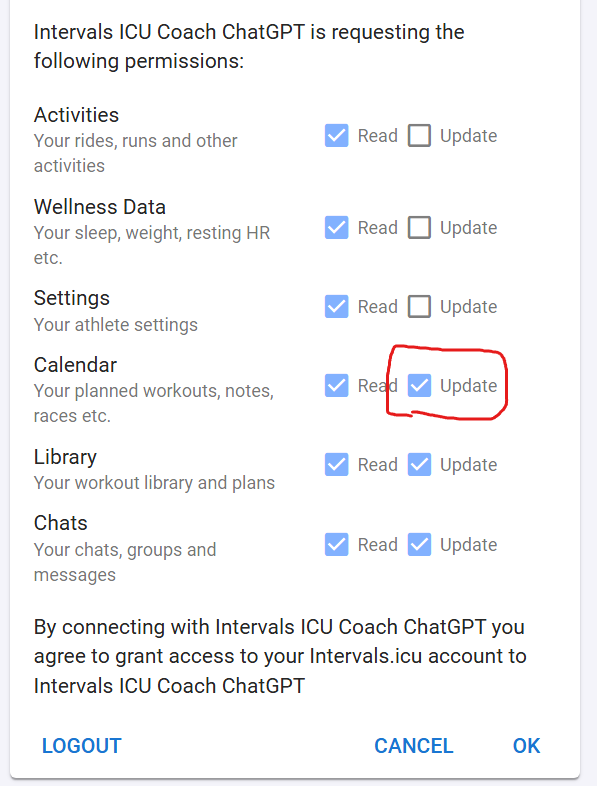 Today ChatGPT is not able to write the workouts directly into my Intervals calendar. Until a few days ago it was working correctly. Has something changed? Thanks